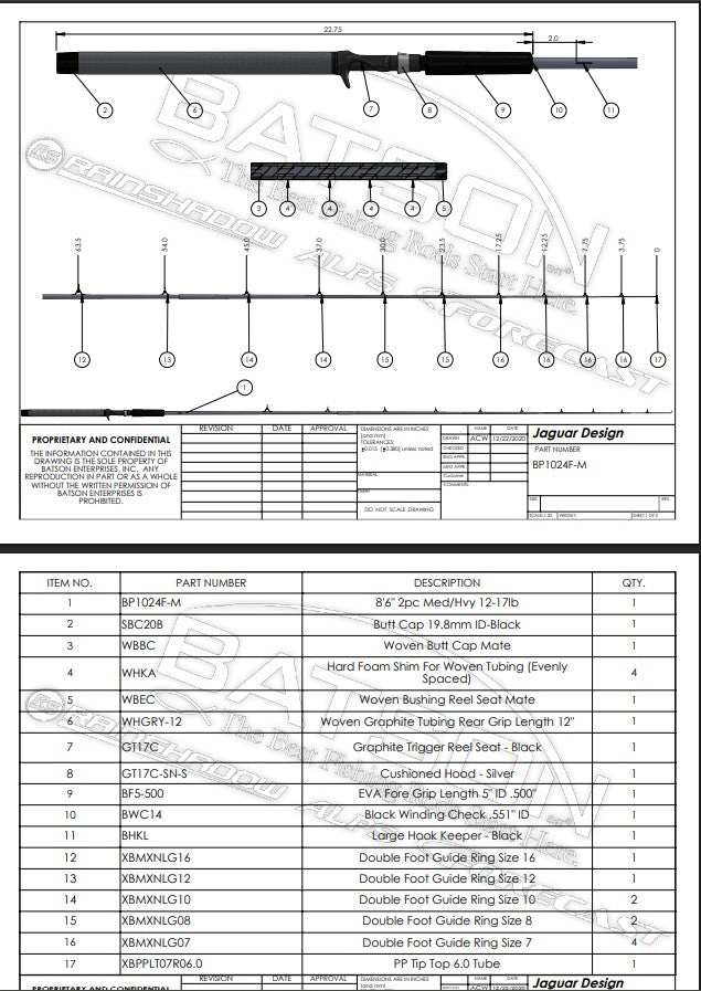 - BP1024F-M Series : RX4 Item Length (in) : 8'6" Number of Pieces : 2 Rod Blank Color : Gray Matte Action : Moderate Power : Medium-Heavy Material : RX4 Graphite/E Glass Blend Line Rating (lbs.) : 12-17lb. Lure Weight Rating (oz.) : 1/2-2oz. Weight (oz.) : 3.3oz. Butt Diameter : 0.646 Tip Top Size : 6.0 Rod Blank Application: Downrigger