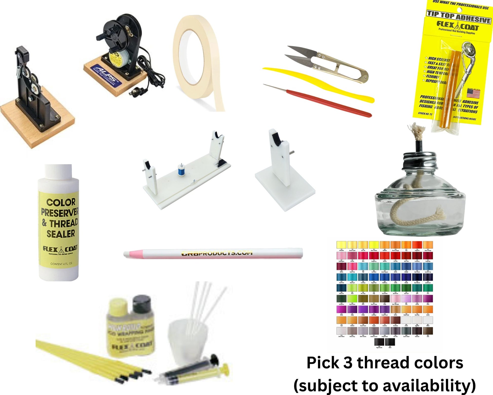Basic 2 comes with everything in the basics plus 3 spools of ColorFast Size D thread (let me know what color, subject to availability)