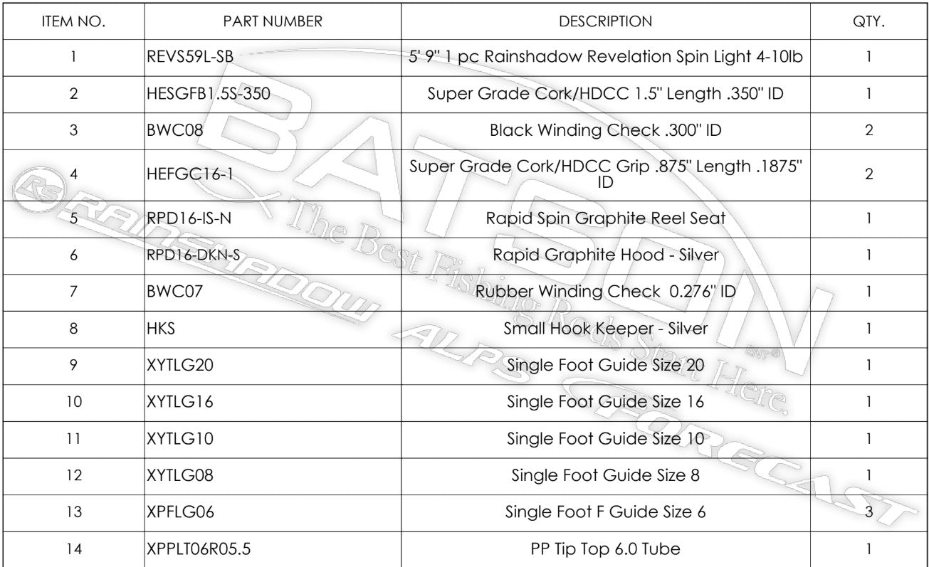 (1) REVS59L-SB Rainshadow blank 5' 9" 1 pc Rainshadow Revelation Spin Light 4-10lb
